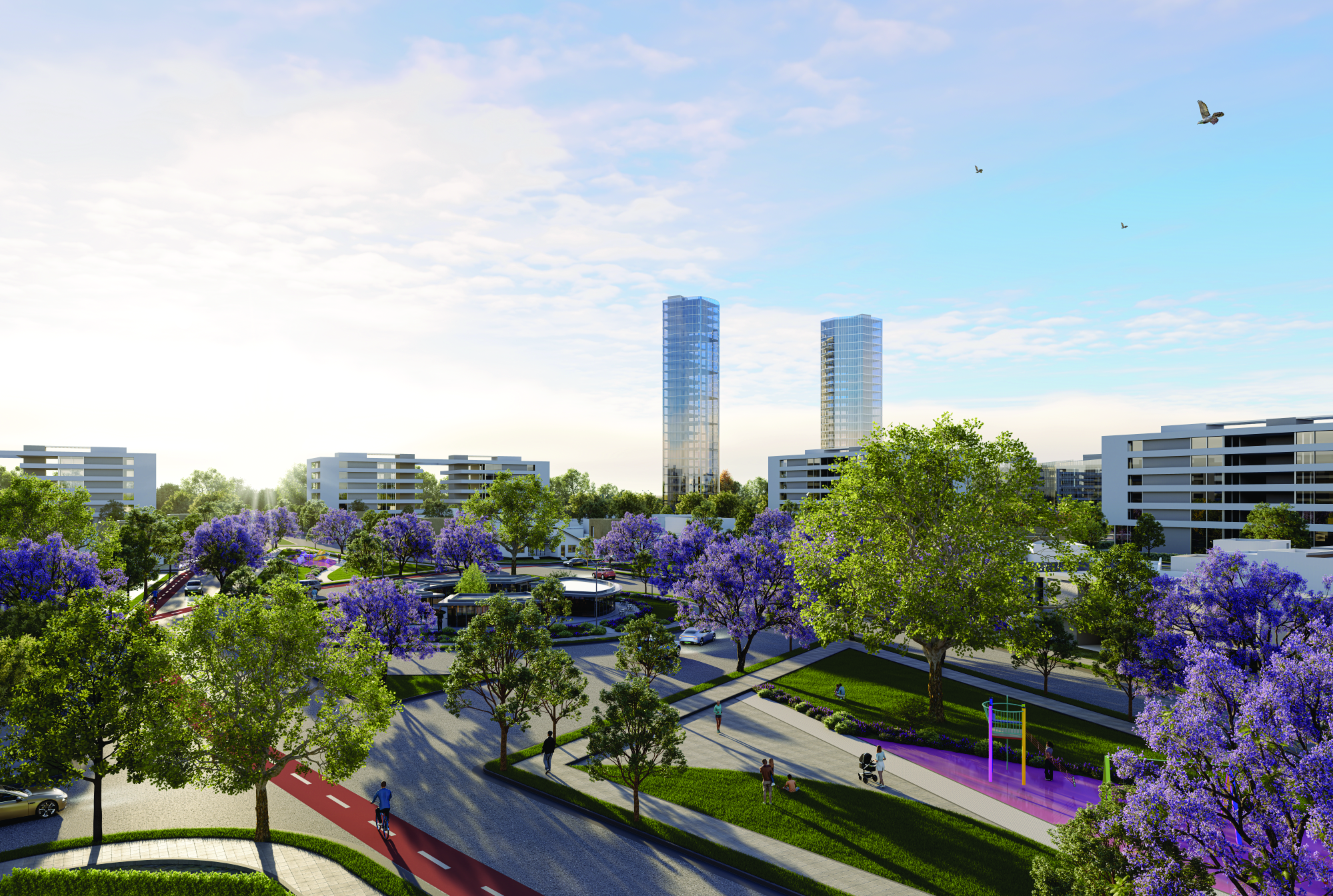 Amplios espacios verdes forestados y equipamiento urbano moderno
