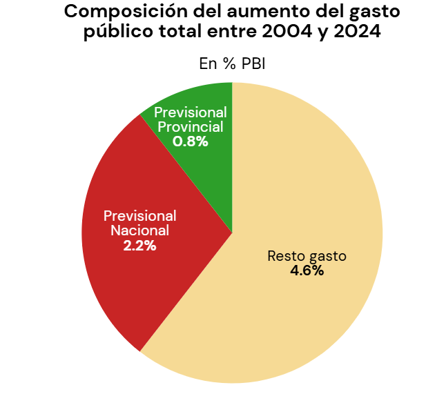 Esta es una razón adicional que aumenta la urgencia de no seguir demorando el ordenamiento del sistema previsional. Según un estudio muy reciente de la Oficina de Presupuesto del Congreso que cuantifica el gasto público total (nacional, provincial y municipal) entre los años 2004 y 2024 se observa que: